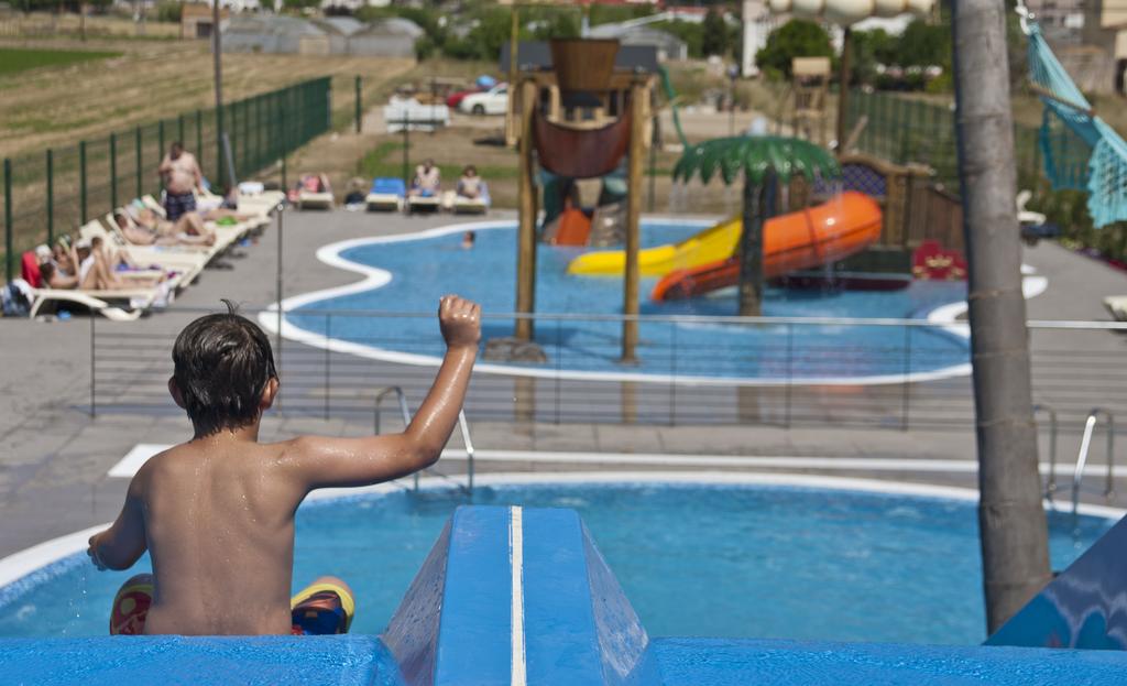 • La piscine avec toboggans est d'eau salée