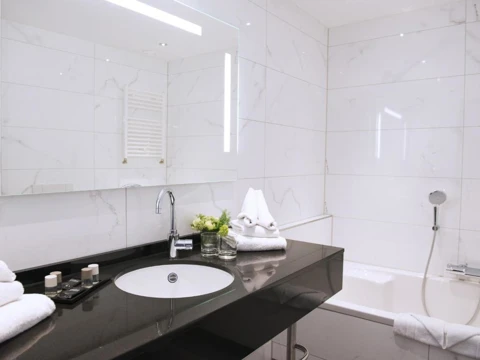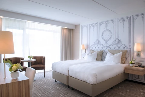 Cette spacieuse chambre lits jumeaux de luxe a été entièrement rénovée. La salle de bain a une baignoire et une cabine de douche séparée. La chambre dispose également d'un balcon ou d'une terrasse.