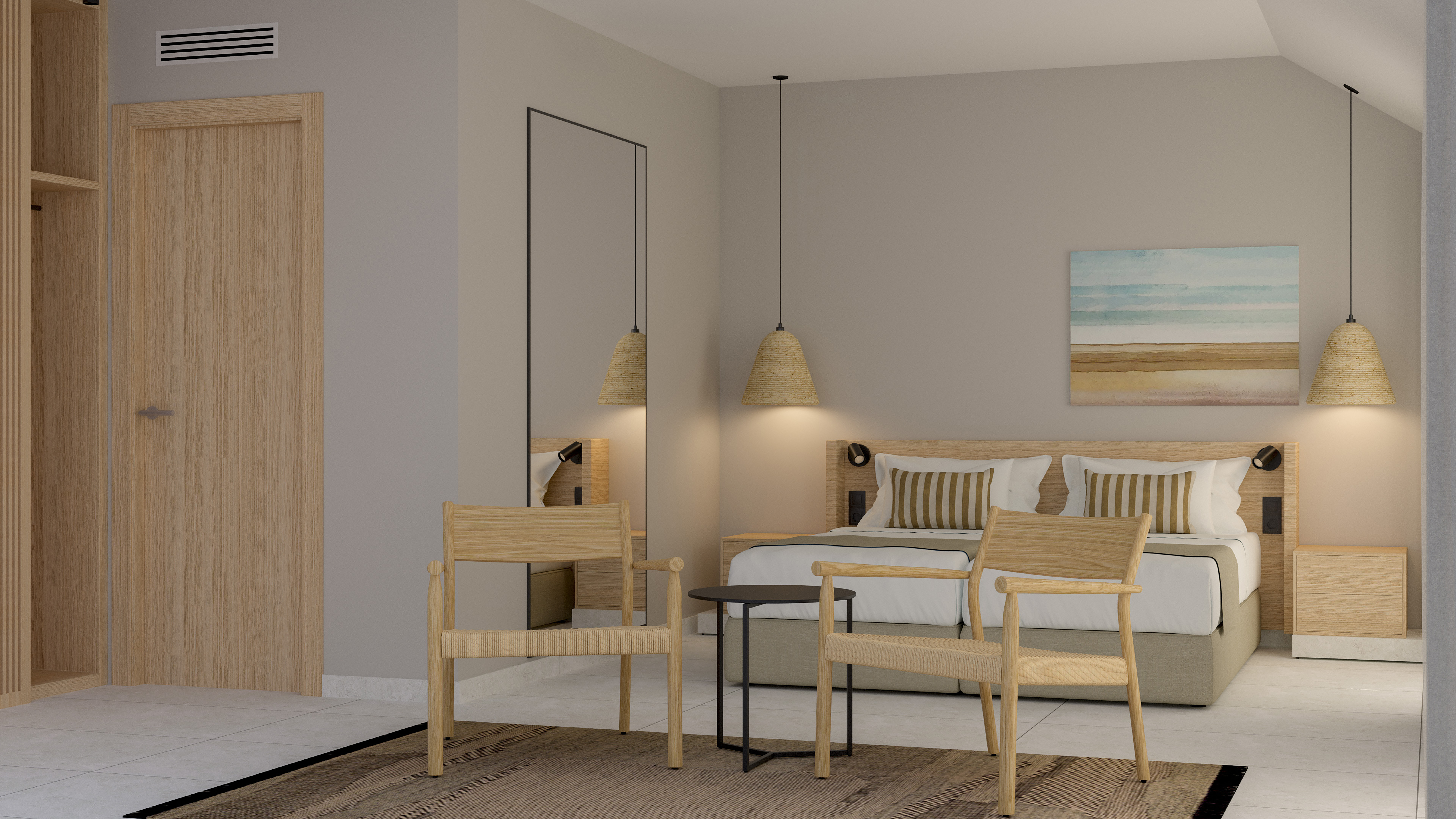 chambre avec terrasse, coffre-fort à louer, télévision à écran plat, wifi gratuit, climatisation, chauffage, sèche-cheveux, miroir de maquillage, minibar. Les lits bébé sont disponibles gratuitement mais doivent être demandés.