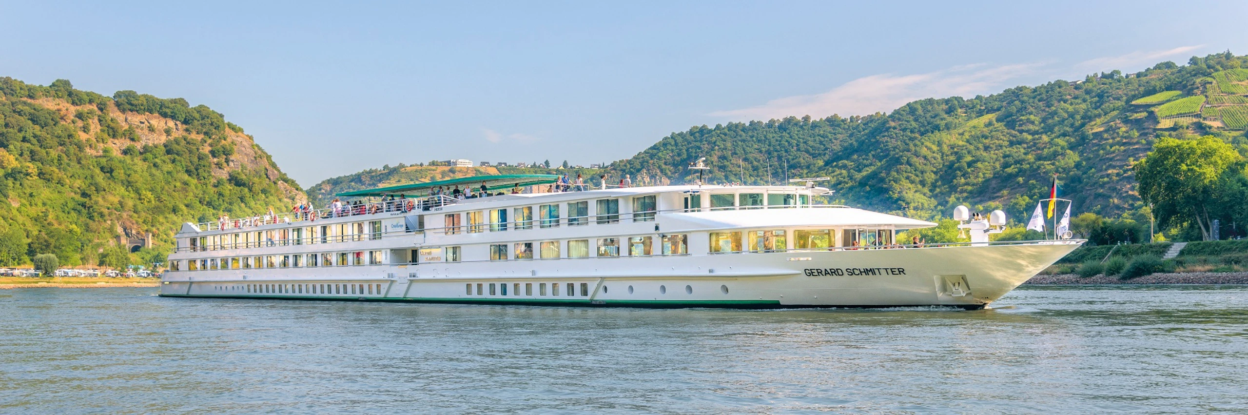 Le MS Gérard Schmitter, construit en 2012, est un navire de 5 couchettes qui mesure 110m de long et 11,40m de large. Il peut accueillir 174 passagers dans 87 cabines réparties sur trois ponts. Chacune d'entre elles, d'une superficie de 13,50 m², dispose de tous les équipements et offre les meilleures conditions d'hébergement. Sur le pont intermédiaire se trouve le restaurant, où tous les repas sont servis pendant le voyage. Le restaurant propose une cuisine raffinée dans un cadre sophistiqué, où de grandes fenêtres vous permettent de profiter pleinement de la vue panoramique. Sur le même pont, vous trouverez également le salon/bar avec piste de danse. Sur le pont soleil, lieu idéal pour se détendre et admirer le paysage, les passagers peuvent profiter de chaises longues confortables, ainsi que d'un grand espace ombragé.