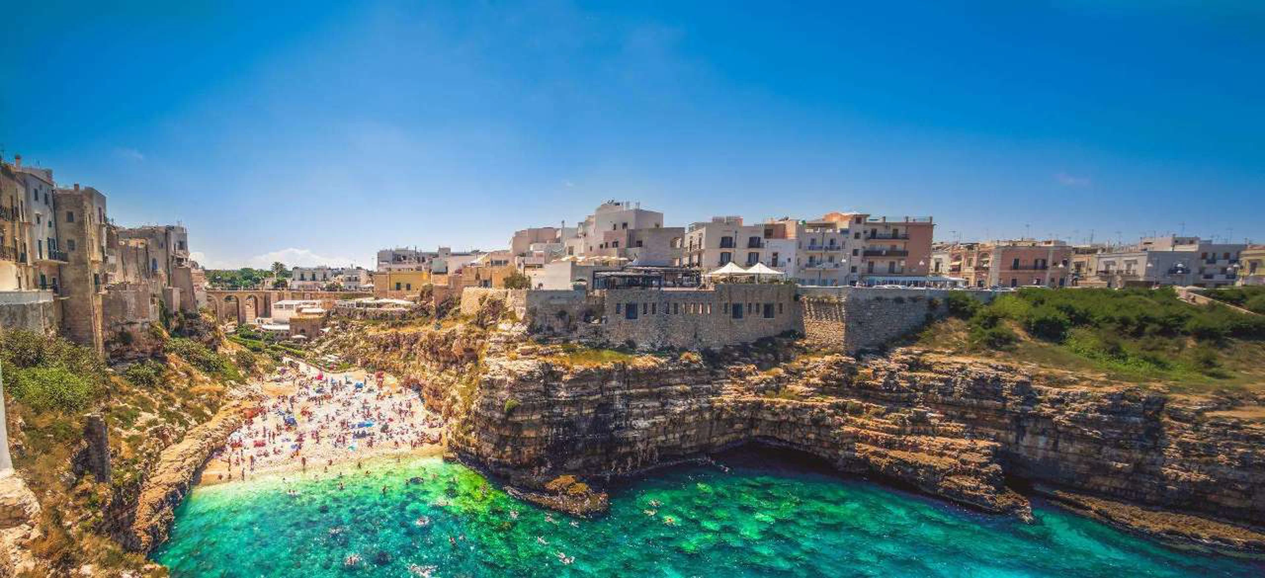 Après la capitale Bari, nous explorons aujourd'hui la ville de Polignano a Mare. Cette ville est construite sur les falaises de la mer, ce qui lui donne un aspect très photogénique.