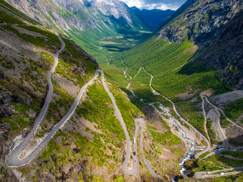 Un autre moment fort de votre voyage vous attend aujourd'hui : Le célèbre Geirangerfjord. Tout d'abord, vous découvrirez des pentes montagneuses abruptes et de nombreuses chutes d'eau tonitruantes lors d'une promenade en bateau sur le plus bel estuaire de Norvège. Faites un détour par le point de vue d'Örnesvingen et rejoignez Loen en empruntant de nombreux virages en épingle à cheveux et en traversant la magnifique vallée de Stryntal. Prenez le téléphérique jusqu'au sommet de la montagne et profitez d'un panorama à couper le souffle. Profitez de la vue ! Dîner et nuit dans la région de Loen.