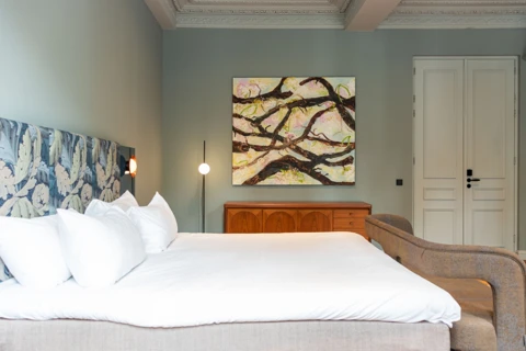 Les chambres, comme le reste de l'hôtel, sont la combinaison parfaite de meubles d'inspiration vintage et d'art contemporain. Ajoutez à cela les merveilleux draps de lit et vous avez la recette d'une merveilleuse nuit à Maastricht. Les chambres sont parfaitement équipées avec coffre-fort, machine Nespresso, haut-parleur Marshall, télévision, Wi-Fi et une salle de bain entièrement équipée avec douche à effet pluie.