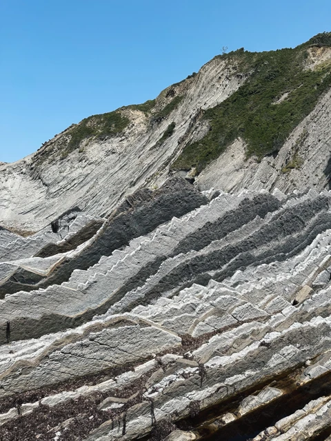 Aujourd'hui sera une journée exceptionnelle pour les amoureux de la nature, car nous découvrirons plusieurs sites magnifiques sur la côte basque. Nous commencerons par Zumaia, célèbre pour ses formations rocheuses particulières appelées « flysch ». Nous poursuivrons ensuite vers Getaria, appréciée pour son centre historique, mais surtout pour ses restaurants proposant du poisson grillé accompagné de vin. Dans l'après-midi, nous ferons une halte à Zarautz, dont la magnifique plage a attiré des visiteurs célèbres tels que le roi Baudouin de Belgique, Marlene Dietrich et Jacky Kennedy. Comme eux, vous pourrez profiter d'une vue imprenable sur l'océan.