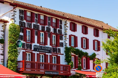 Aujourd'hui, nous découvrons le Pays bas français et nous nous dirigeons d'abord vers l'intérieur des terres, vers la jolie petite ville d'Espelette, où les piments rouges pendent aux façades comme des diamants à une couronne. Un court trajet nous mène ensuite au village de pêcheurs de Saint-Jean-de-Luz, où le futur Roi Soleil Louis XIV épousa Marie-Thérèse d'Autriche, infante d'Espagne, dans l'église Saint-Jean-Baptiste. Nous terminons cette journée par une halte à Hondarribia, une ville touristique où la rivière Bidasoa marque la frontière entre la France et l'Espagne.