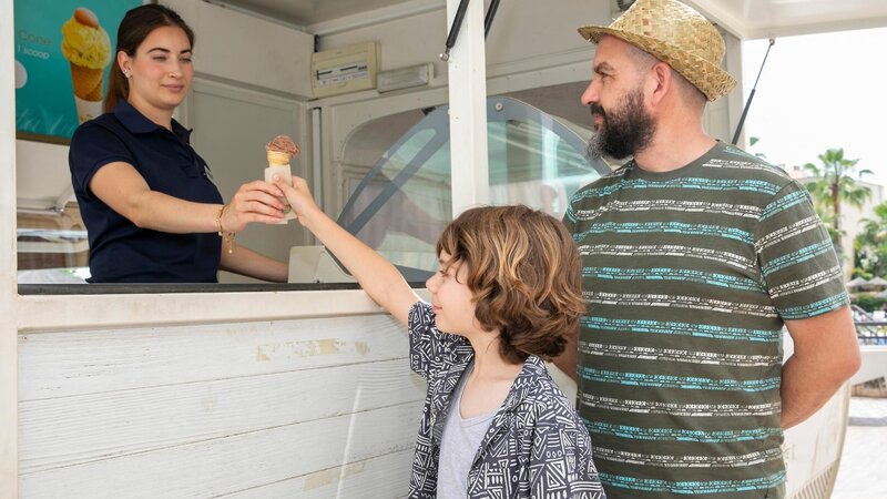 - Repas: Petit-déjeuner, lunch et dîner dans le restaurant principal de l'hôtel. Repas en buffet avec cuisine de démonstration. De 10.00u. à 24.00u. Eau, vin du patron, bière et/ou boissons rafraîchissantes, boissons alcoolisées locales, sangria, jus de fruits, ... De 10.00u. à 24.00u. assortiment de glaces pour les enfants. De 11.00u. à 17.00u. (entre 01/05 et 30/09) plusieurs snacks: Hamburgers, frites, hotdog, ...