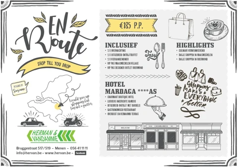 Quand on pense au shopping, on pense immédiatement aux grandes villes comme Maasmechelen et Roermond. Pendant ces deux jours, vous pouvez vous laisser aller et faire des achats à l'infini. Cela est combiné avec une nuitée luxueuse à l'hôtel Margada où vous pourrez vous détendre. Nous vous offrons un VIP PAS pour Maasmechelen Village et Designer Outlet Roermond afin que vous puissiez bénéficier d'une réduction supplémentaire de 10 %.
