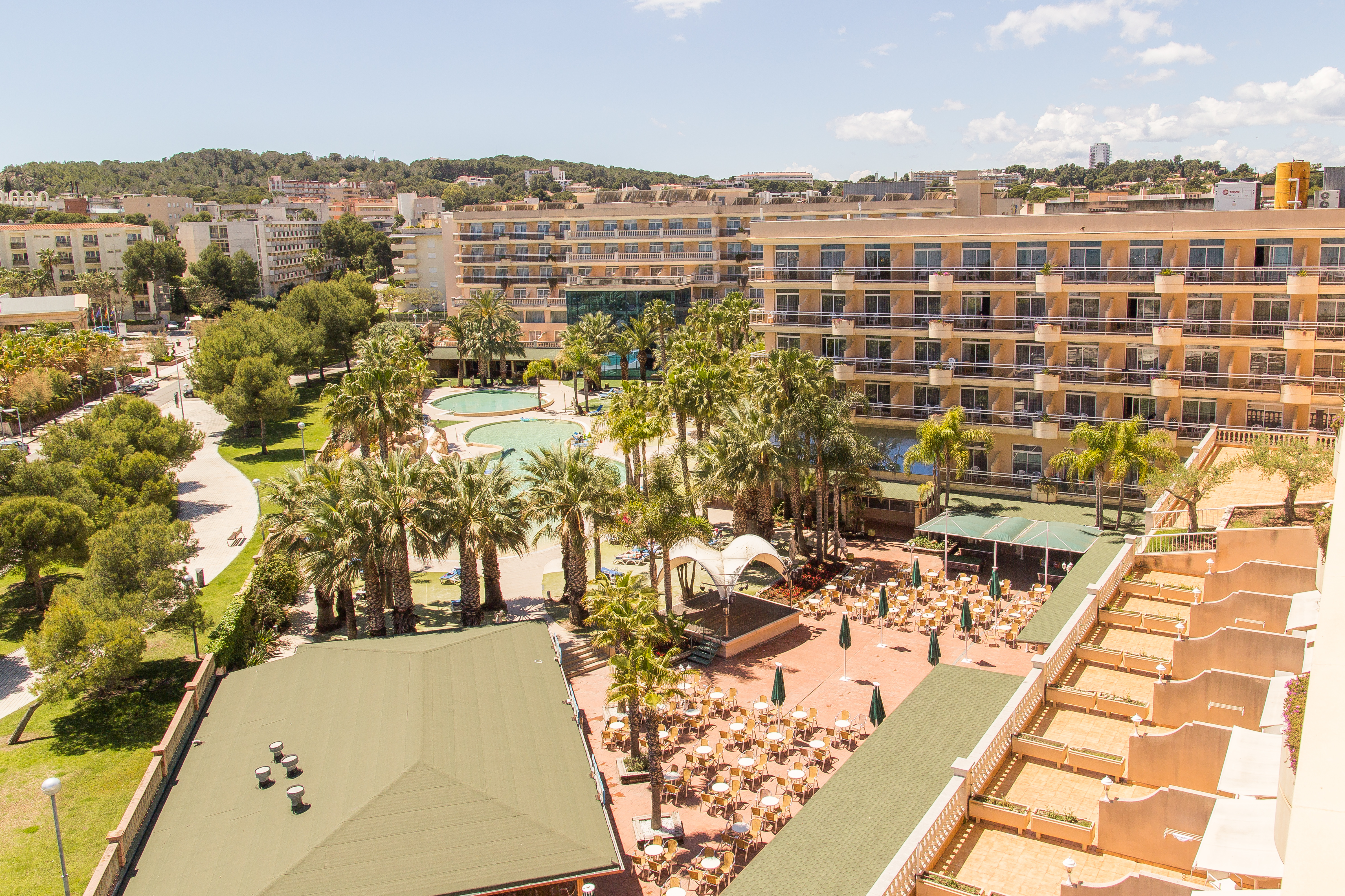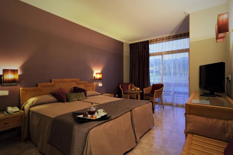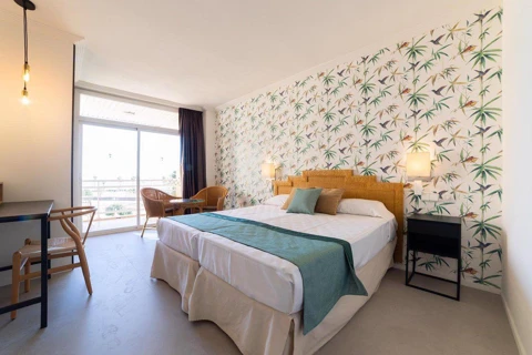 De standaardkamers van het Palas Pineda Hotel zijn perfect om te ontspannen aan zee: slaapkamer met twee eenpersoonsbedden van 90 cm, lcd-tv, telefoon, kledingkast, kluis, badkamer met haardroger, koelkast, terras en 1 of 2 extra bedden.
