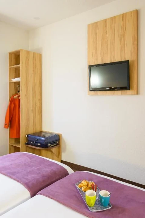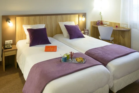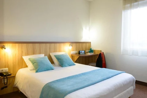 De kamers in Brit Hotel Reims Croix Blandin zijn modern en stijlvol ingericht, met een focus op comfort en functionaliteit. Elke kamer is voorzien van airconditioning, een flatscreen-tv, gratis Wi-Fi en een bureau, ideaal voor zowel ontspanning als werk. De geluiddichte kamers zorgen voor een rustige nachtrust, terwijl de ruime en eigentijdse badkamers zijn uitgerust met een inloopdouche, haardroger en hoogwaardige toiletartikelen. Gasten hebben keuze uit verschillende kamertypes, waaronder tweepersoonskamers met kingsize bedden of kamers met aparte bedden, passend bij verschillende wensen en verblijfsdoelen.